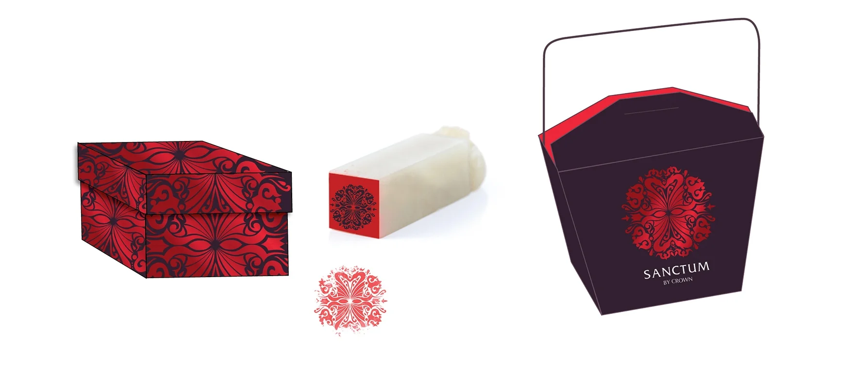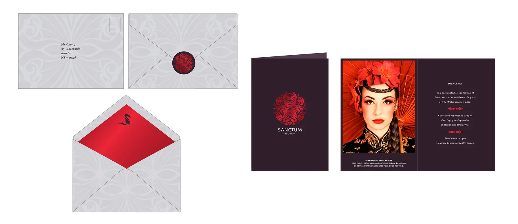 Idea | The final design was an ornate symmetrical decoration including a reflection of a dragon. The dragon was the Chinese New Year icon for 2012, when the campaign launched.